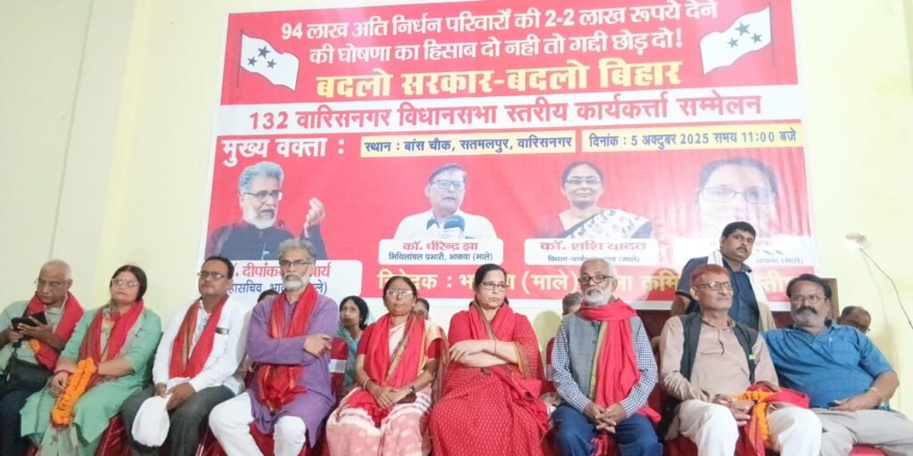 भाकपा (माले) के वारिसनगर स्तरीय कार्यकर्ता सम्मेलन को अखिल भारतीय खेत व ग्रामीण मजदूर सभा के जिला सचिव जीवछ पासवान, ऐपवा नेत्री वंदना सिंह, आइसा राज्य सचिव प्रीति कुमारी, वारिसनगर के इंडिया गठबंधन प्रत्याशी फूलबाबू सिंह, कल्याणपुर के पूर्व प्रत्याशी रंजीत कुमार, माकपा नेता एसएन इमाम, राजद के जिला महासचिव राकेश कुमार आदि नेताओं ने भी संबोधित किया. कार्यकर्ता कन्वेंशन की अध्यक्षता व संचालन भाकपा (माले) जिला सचिव प्रो. उमेश कुमार ने किया।