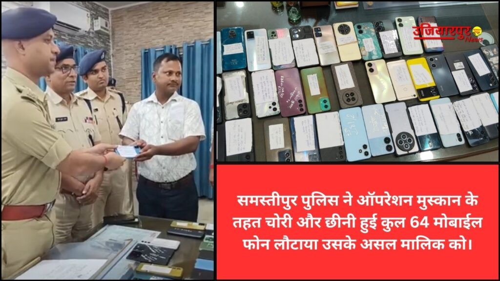 समस्तीपुर पुलिस ने ऑपरेशन मुस्कान के तहत चोरी और छीनी हुई कुल 64 मोबाईल फोन लौटाया उसके असल मालिक को…
