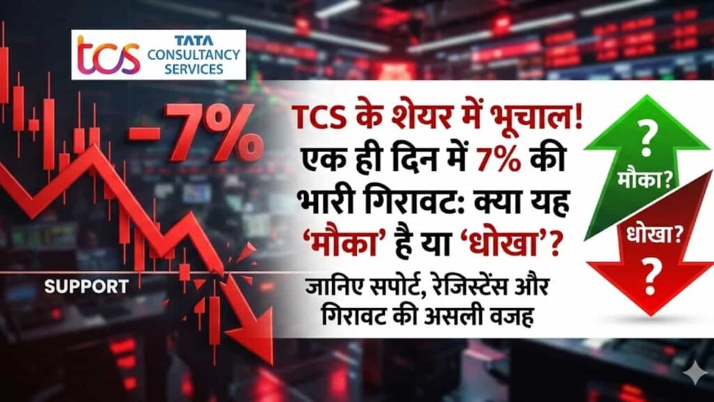 TCS के शेयर में भूचाल! एक ही दिन में 7% की भारी गिरावट: क्या यह ‘मौका’ है या ‘धोखा’? जानिए सपोर्ट, रेजिस्टेंस और गिरावट की असली वजह