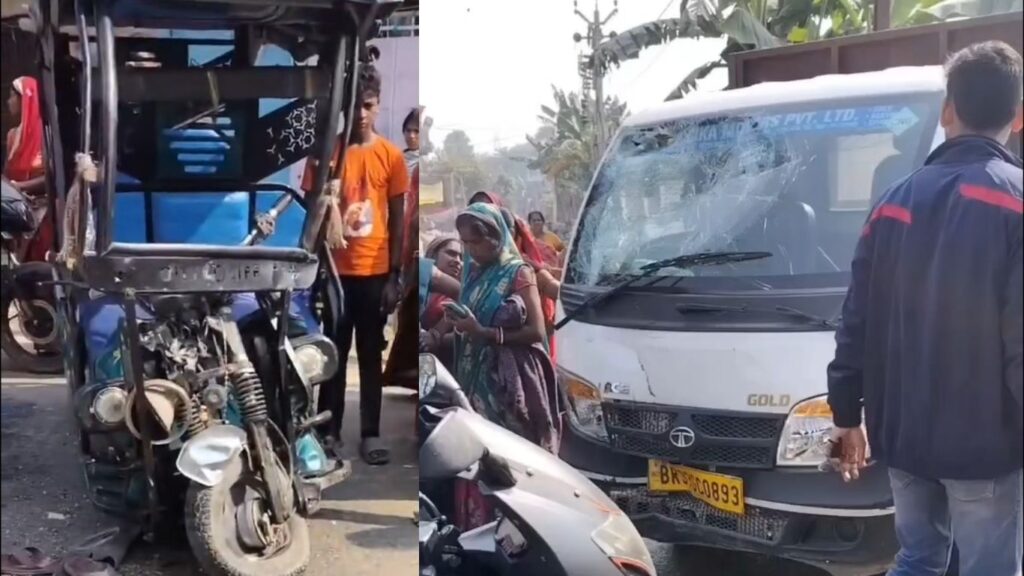 उजियारपुर में टोटो और मैजिक के बीच हुई टक्कर में चालक सहित 3 लोग जख्मी, चालक कि हालत गंभीर